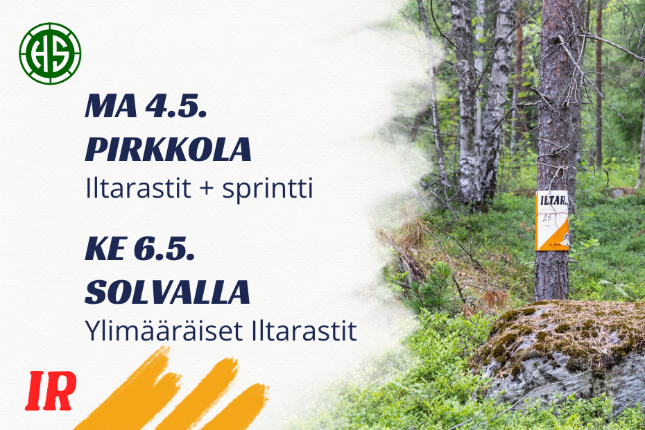 Samalla viikolla järjetetään myös ylimääräiset Iltarastit keskiviikkona 6. toukokuuta, jolloin suunnistetaan Solvallassa 2–7 kilometrin radoilla.